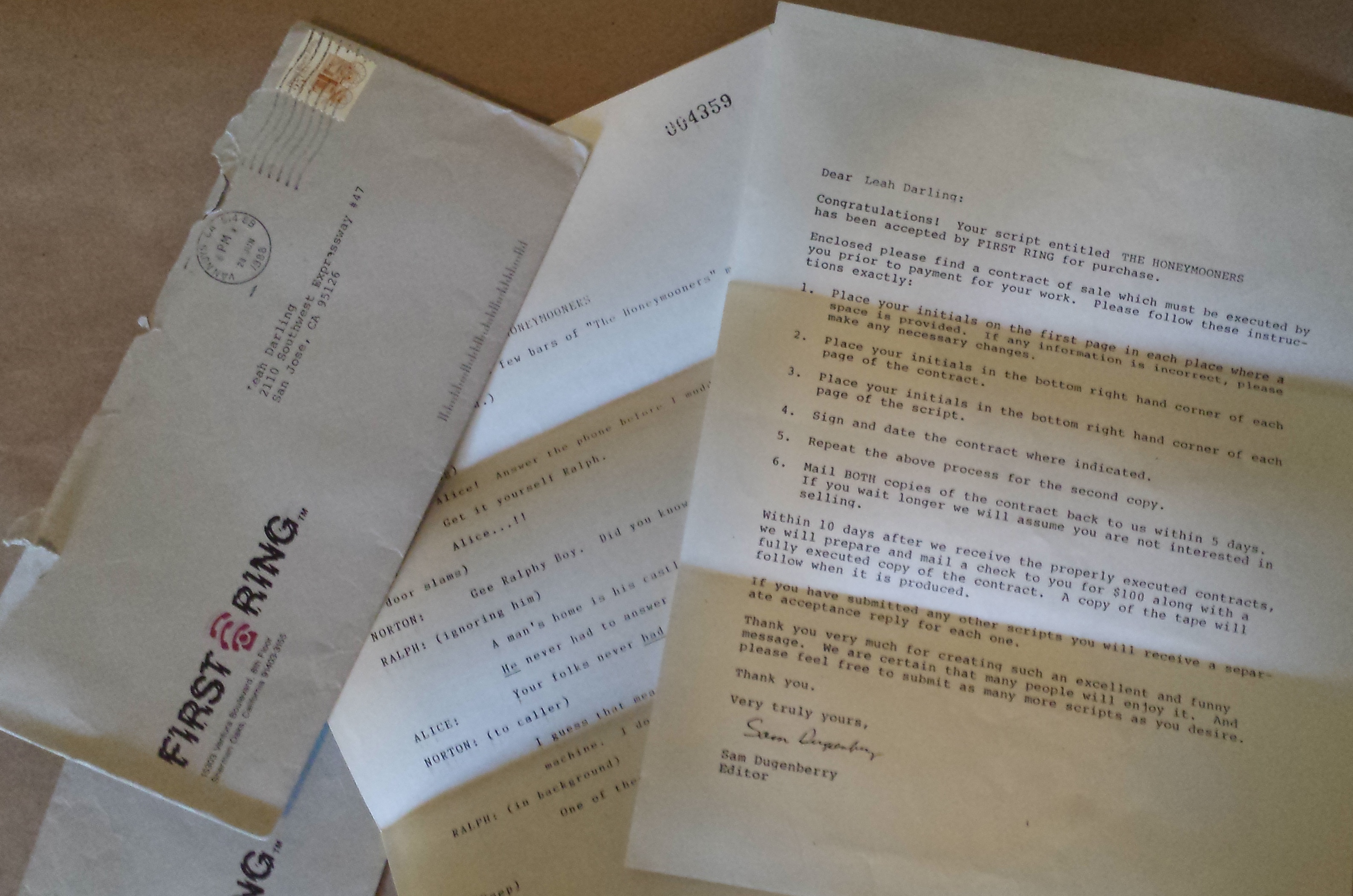 I sold them a script based on the old 1950s TV show, The Honeymooners. This was ironic, because the show had been off the air since before I was born and I’d never seen a single episode (although my grandparents had described it in great detail). Anyway, they bought all rights, sent me a check for a hundred dollars, and promptly went out of business.